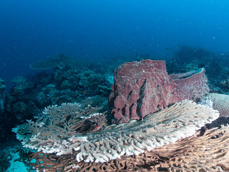 Steigende Meerestemperaturen gelten als Hauptursache für das gegenwärtige Korallensterben. Korallen leben in enger Symbiose mit winzigen einzelligen Algen (Zooxanthellen), die in ihrem Gewebe sitzen und sie mit Nährstoffen versorgen – zugleich verleihen diese Algen den Korallen ihre prächtigen Farben. Aber wenn das Wasser zu warm wird, gerät diese lebenswichtige Partnerschaft aus dem Gleichgewicht: Gestresste Algen produzieren giftige Stoffe und die Korallen stoßen sie ab. Ohne ihre Algen fehlen den Korallen sowohl die Nahrungsgrundlage als auch die Farbe – die Riffe bleichen aus und werden anfällig. Hält der Hitzestress zu lange an, verhungern die Korallen und sterben ab. Dieses Phänomen der Korallenbleiche hat in den letzten Jahren massiv an Häufigkeit und Intensität zugenommen.